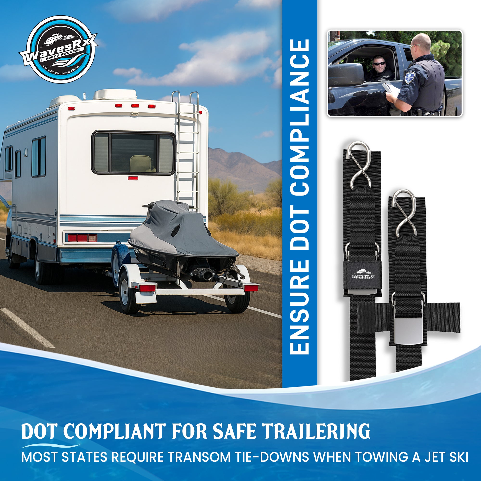 Many U.S. states require transom tie-down straps to secure your watercraft during transport, or may issue citations for an unsecured load.