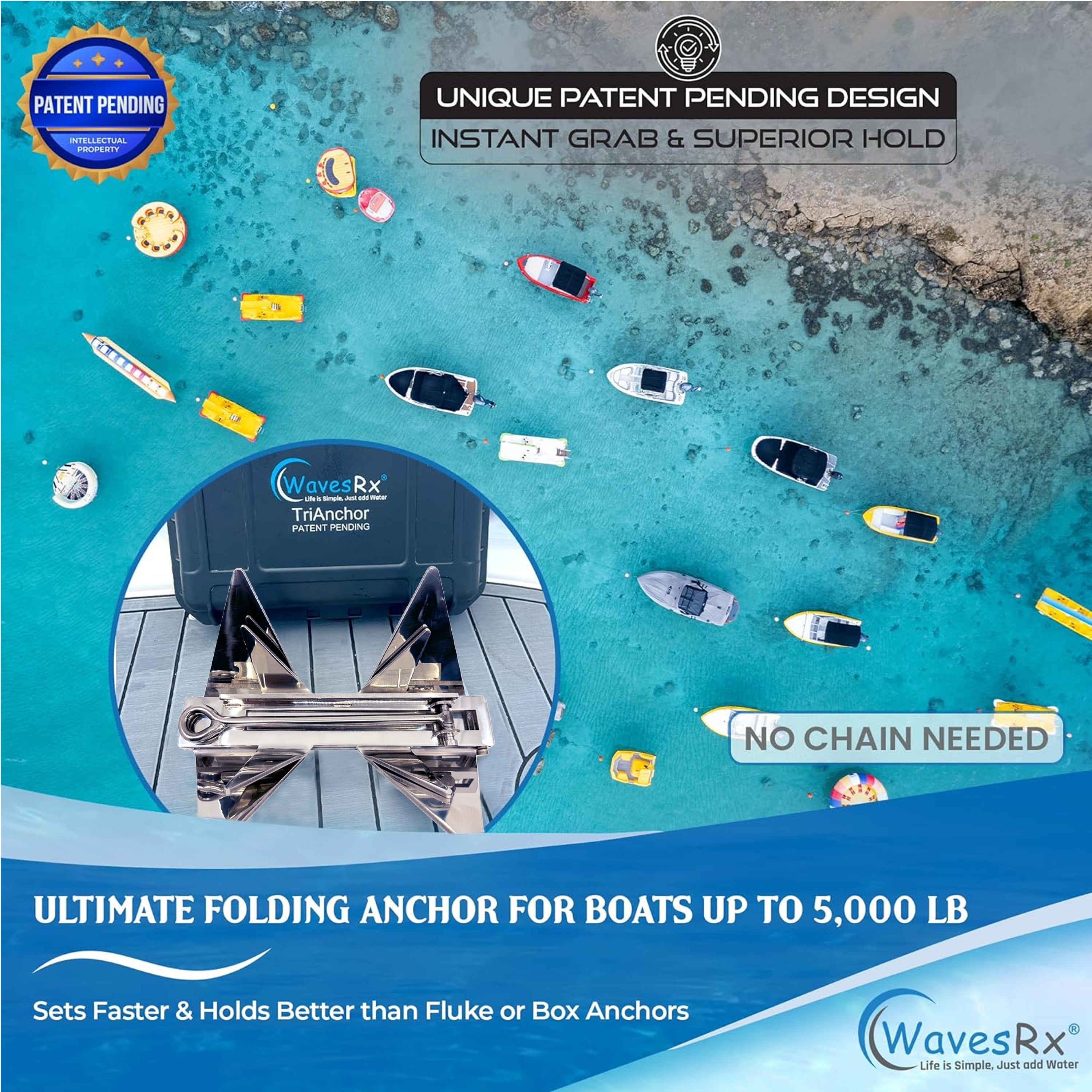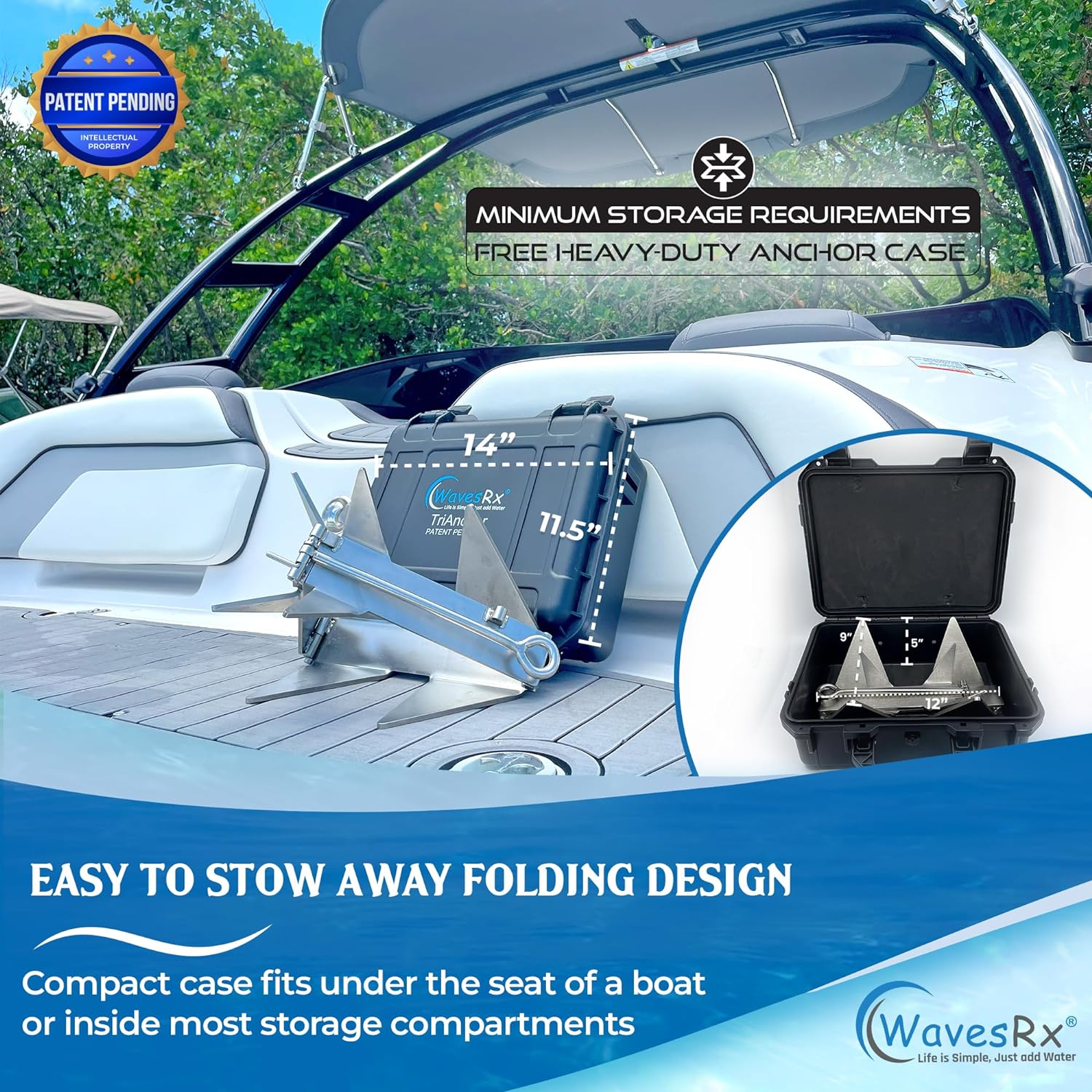 We've tried them all: Box Anchors, Grapnel Anchors, Fluke Anchors, Nylon Anchors, Sand Bags. They are either too bulky or they just don't hold well enough. That’s why we developed the WavesRx TriAnchor as the Ultimate Solution to Simple and Effective Anchoring.For muck bottoms, get the next size 12lb