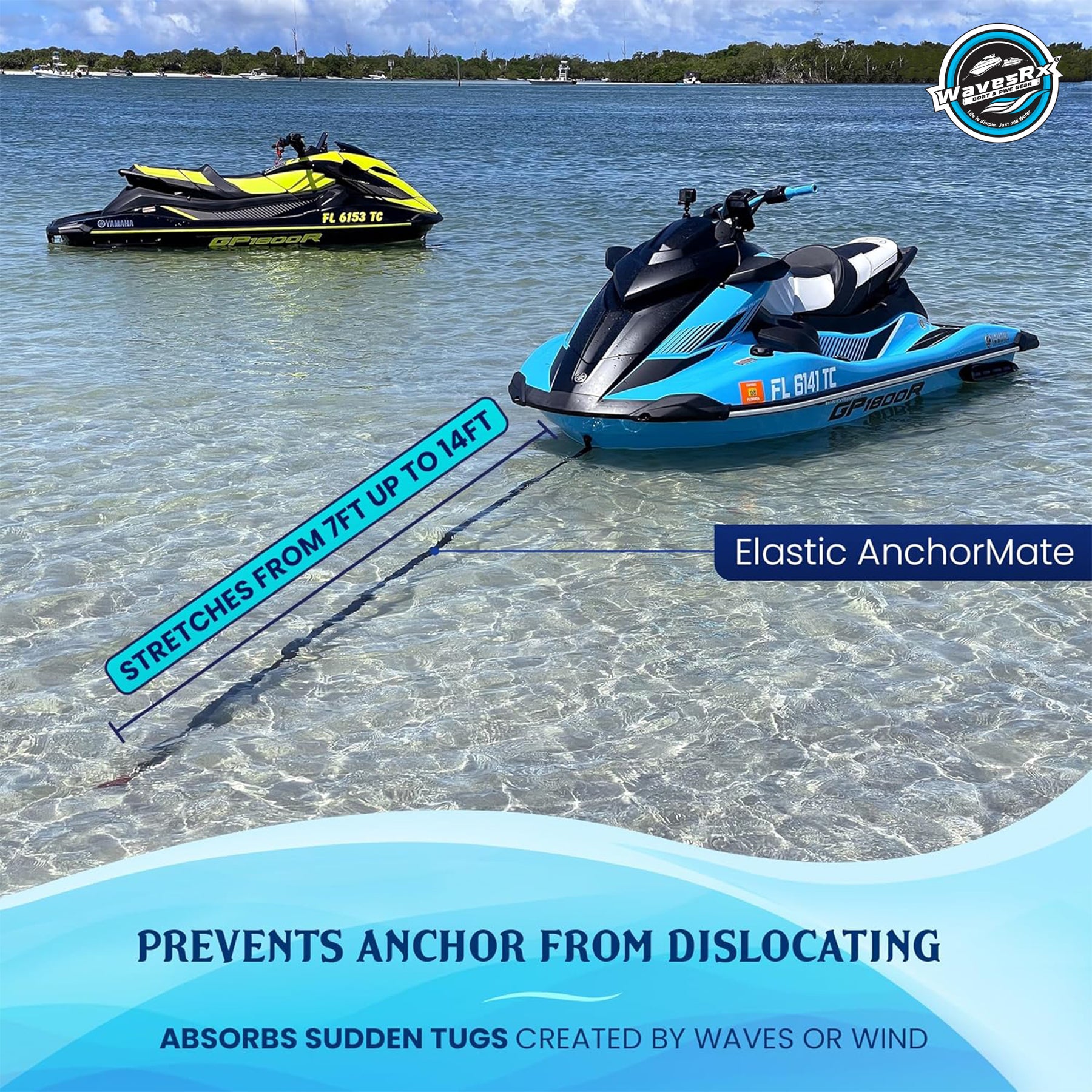 When connected to a beach anchor and used in combination with a deep water anchor, it creates a strong tether that will hold your Jet Ski stationary even in rough surf and prevent it from drifting away or colliding with nearby watercraft.
