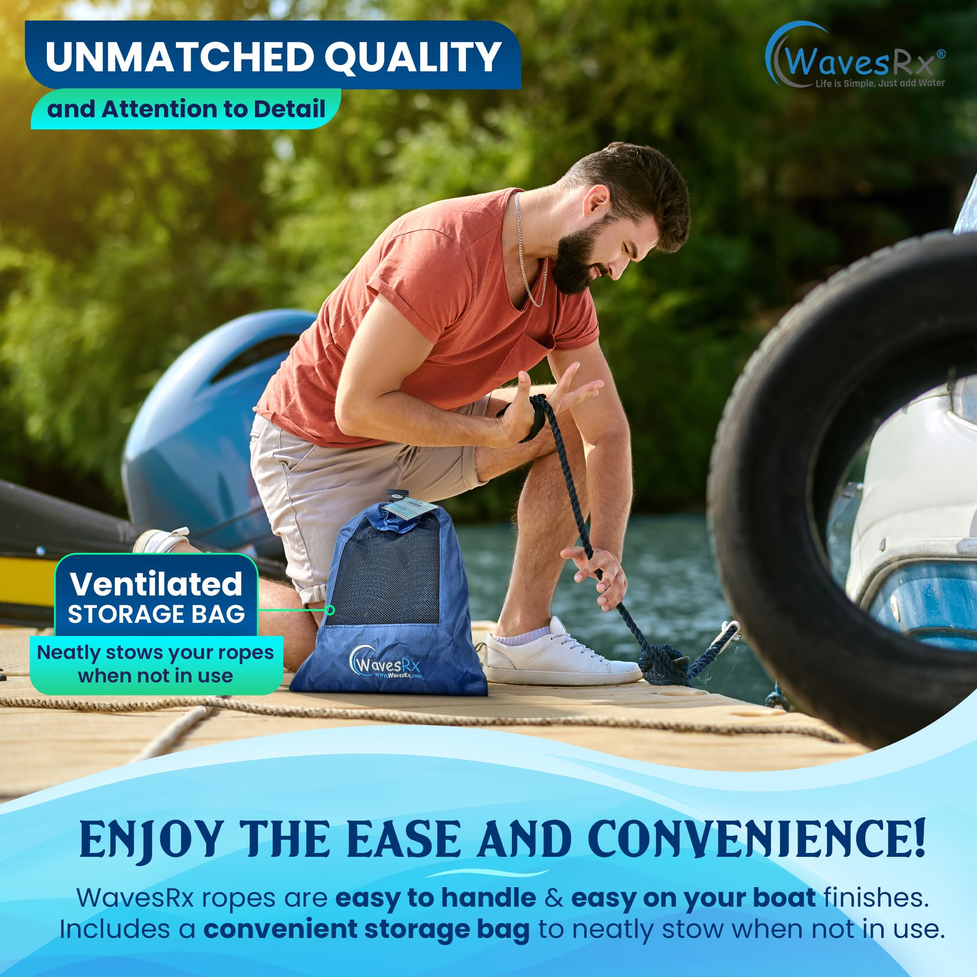 Take a touch test and feel the quality and softness of our ropes - Easy on your Boat Finishes and extremely Comfortable to Handle. Receive a FREE durable and convenient Storage Bag to neatly stow your ropes when not in use.