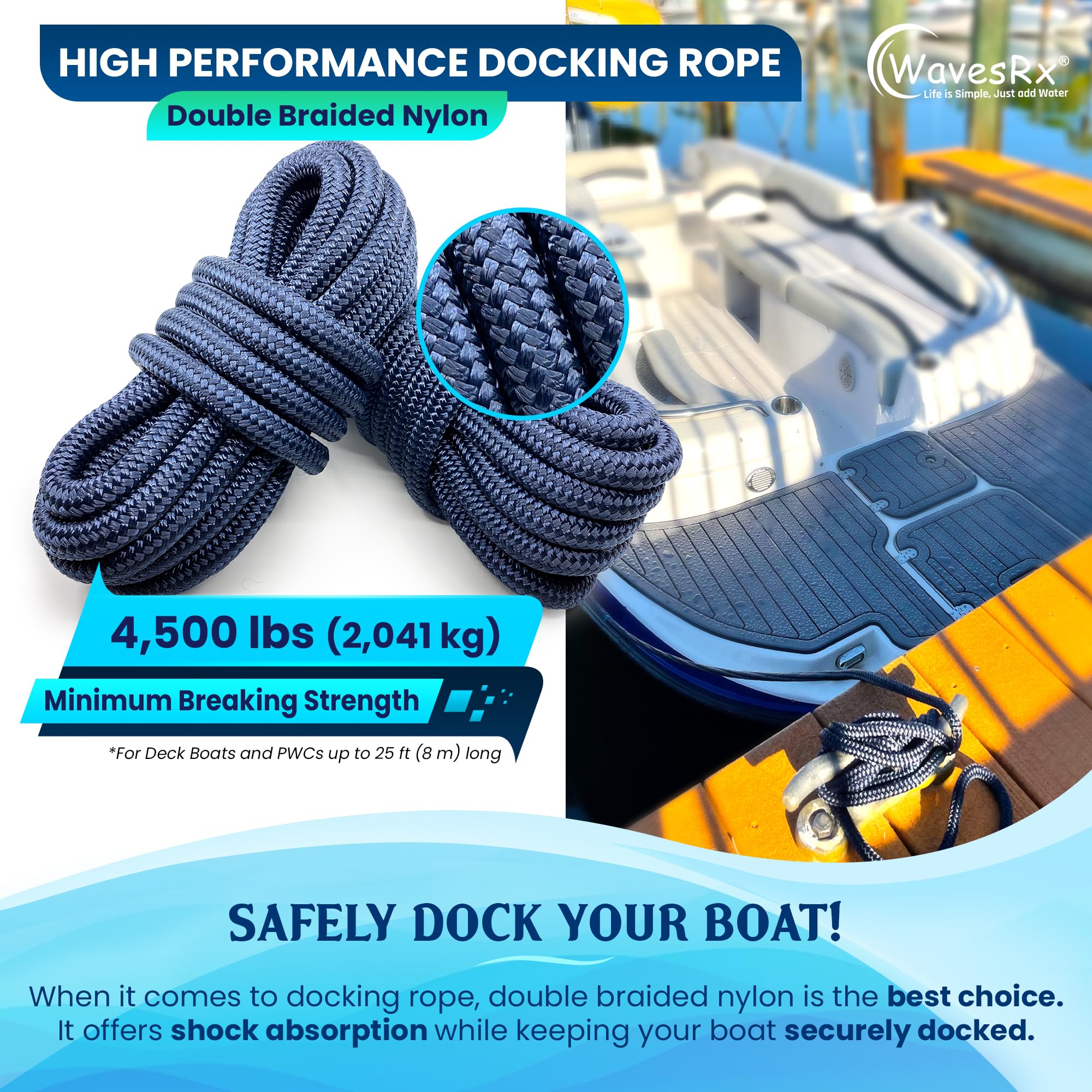 When docking your boat it is essential that you limit the movement of your watercraft while absorbing any shocks created by waves. Our High Performance Double Braided Nylon is by far the Superior Material used in dock lines. You get the perfect combination of Low Stretch and High Shock Absorption to ensure that your boat will stay Securely Docked.