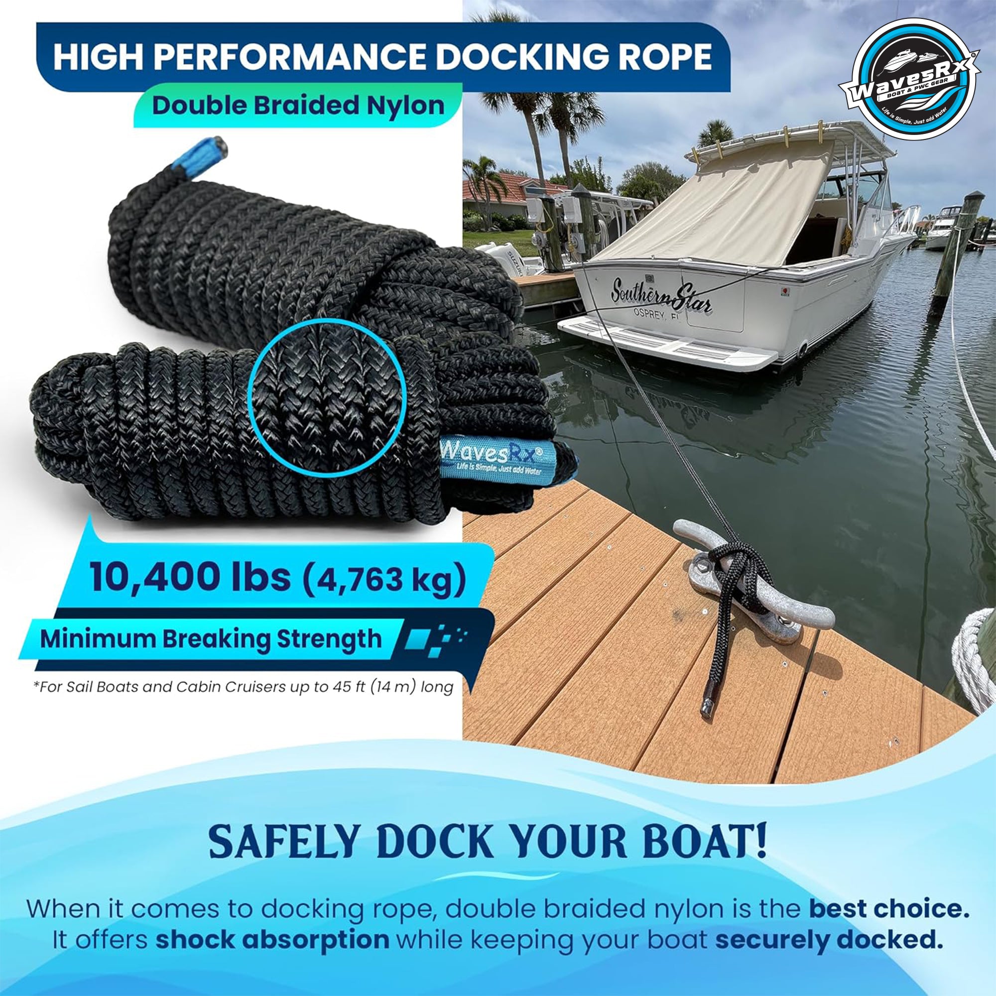 When docking your boat it is essential that you limit the movement of your watercraft while absorbing any shocks created by waves. Our High Performance Double Braided Nylon is by far the Superior Material used in dock lines. You get the perfect combination of Low Stretch and High Shock Absorption to ensure that your boat will stay Securely Docked.